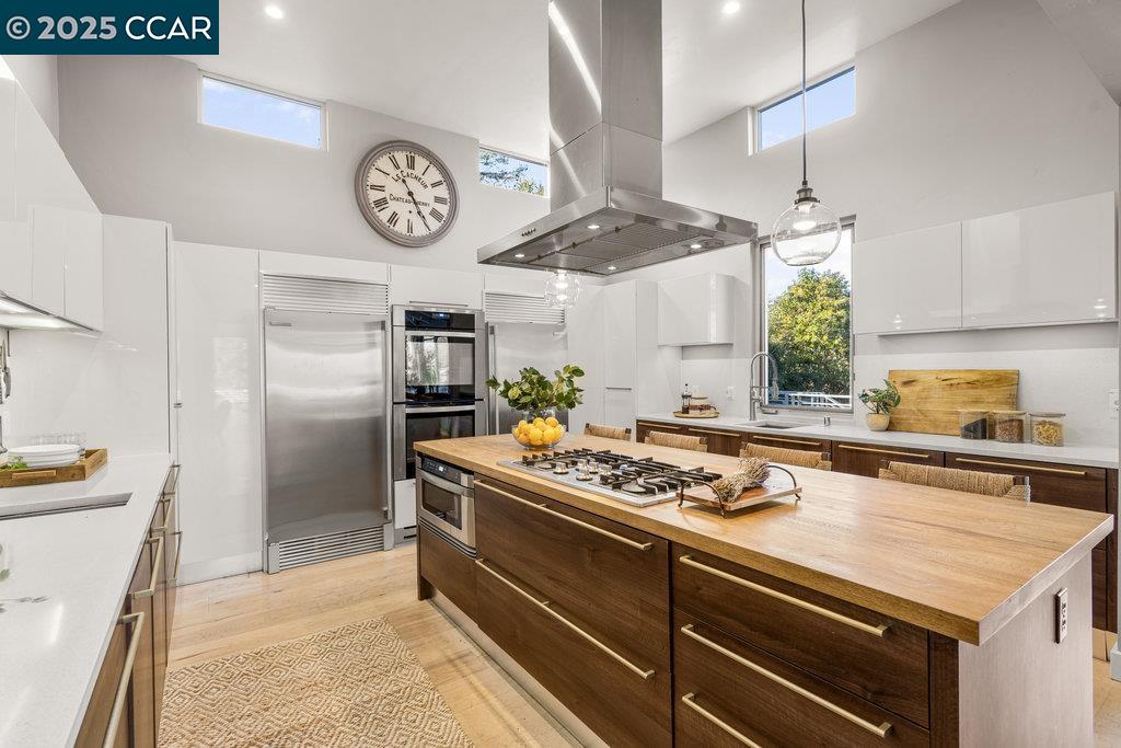 Welcome to 20 Highland Ct, a custom, contemporary estate in the coveted Westside Danville area, meticulously re-designed and rebuilt in 2008 by renowned architect Joseph Gorny. With soaring ceilings, walls of windows, and an abundance of natural light, this home seamlessly blends indoor and outdoor living, offering captivating views of Mt. Diablo. The expansive deck is the perfect spot to take in the scenery. The open-concept floor plan features a grand Great Room that flows into the gourmet kitchen, creating an ideal space for both intimate gatherings and large-scale entertaining. A formal sunken living room adds an elegant touch to the main level. The luxurious main floor master retreat includes a freshly renovated spa-like bathroom for ultimate relaxation. Upstairs, three additional bedrooms, two offices, and a bonus room provide ample space for all your needs. The detached guest house offers a private bedroom, full bath, kitchenette, living room, and family room--perfect for guests or extended family. Outside, enjoy your private pool and pool house, relax by the fire pit, or challenge friends to a game of bocce on the court. Located in a peaceful cul-de-sac, this home offers unparalleled luxury, convenience, and privacy in one of Danville's most sought-after neighborhoods.